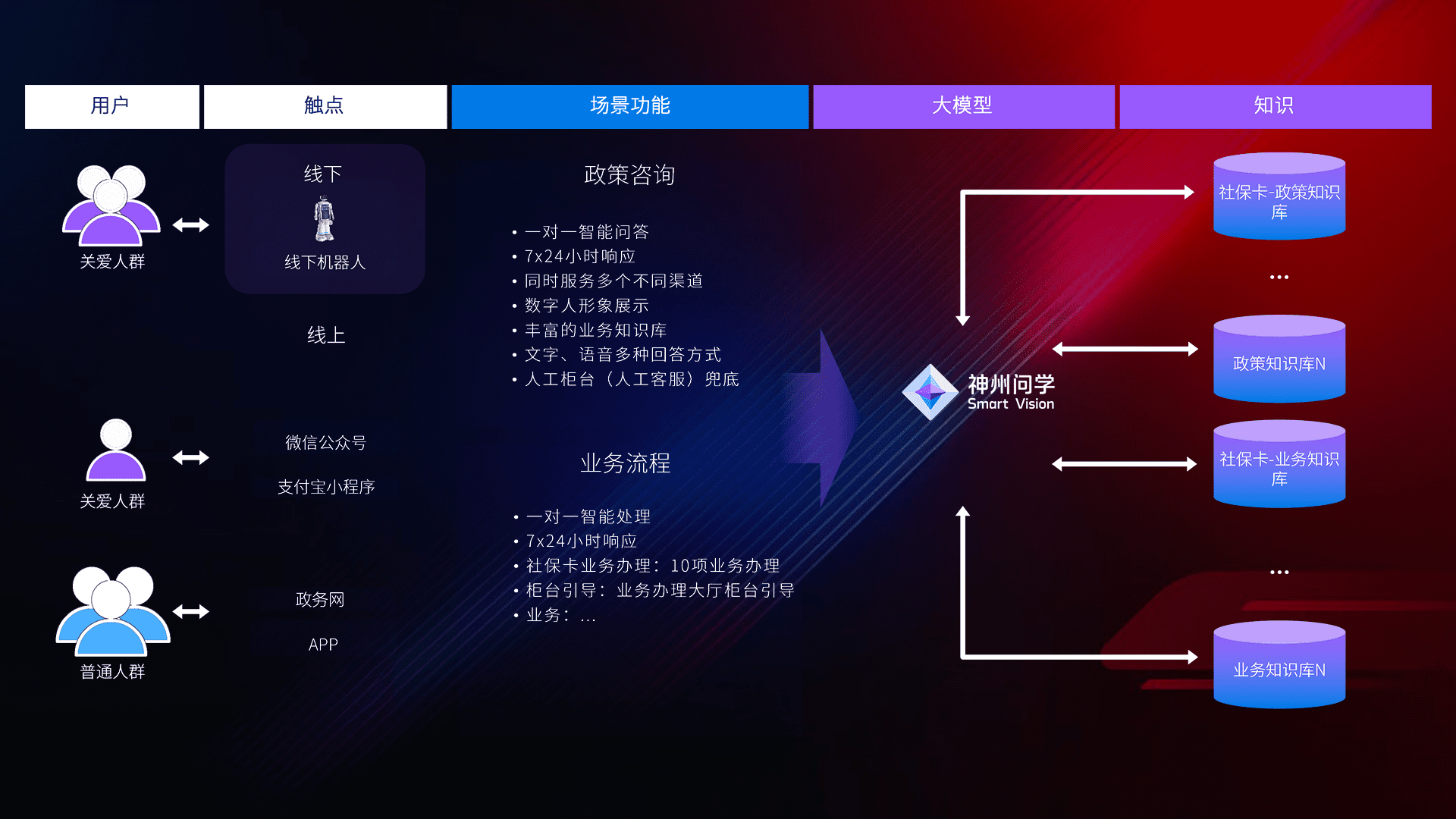 • 线上线下全覆盖:线上提供微信公众号、、支付宝小程序、、政务网、、、app多种渠道,,,与线下机器人形成完整服务体系。。。。