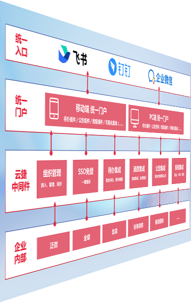 对协作平台提供支持服务,,,,支持企业应用与协作平台对接,,包含组织同步、、、、消息集成、、、、待办集成等。。。支持目前主流的协作平台:钉钉、、、、企微和飞书。。